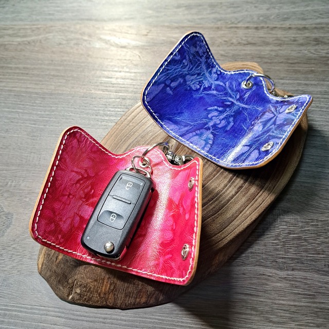ご覧頂きありがとうございます。 [商品説明] イタリアンレザーをメインに使用したスマートキーケースになります。 最近のスマートキーは非接触ですしキーケースから出す事は殆どない事から、内側にはポケット等はなく「包むだけ」のシンプルな機能のキーケースとなっています。 スマートキー用としておりますが、普通の鍵にもお使い頂けるかと思います。 裏地には鮮やかなローズピンクのゴートレザーを使用し、開いた時に目を引く仕上げです。 ローズピンクというカラーですが、赤とピンクの中間くらいの色合いです。 手作業で着色された革のため、使用する部位により色むらや絵柄は1点1点異なりますのでご了承下さいませ。 また、色落ち・色移りする場合がございますので、ご理解頂けますようお願い申し上げます。 [仕様] 本体カラー:ナチュラル 本体材質 :イタリアンレザー(タンニン鞣し) 裏地カラー:ローズピンク 裏地材質 :ゴートレザー(タンニン鞣し革) 縫製糸 :ビニモMBT(総手縫い) パーツ :ホック/リング/ナスカン Size(本体) W: 50mm D: 36mm H 105mm(最大) Size(本体 開いた時) W: 145mm D: 2.5mm H: 105mm(最大) ※製品サイズにつきましては、多少の誤差がございますのでご了承下さい。 ※本製品のカラーは外/ナチュラル、中/ローズピンクになります。 ■返品・交換について 商品の品質につきましては万全を期しておりますが万一、不良・破損などがございましたら、商品ご到着後7日以内にCONTACTページよりご連絡下さい。 返品または交換の対応をさせて頂きます。 詳しくは、SHOPPING GUIDEページをご参照下さい。 ■革製品のお取り扱いについて 革製品は大変デリケートな性質を持ちますので、SHOPPING GUIDEページに記載の注意事項をご参照頂きご理解の上、ご使用頂けますようお願い申し上げます。