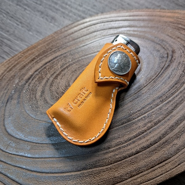 ご覧頂きありがとうございます。 [商品説明] 栃木サドルレザーを使用したライターケースになります。 小ぶりな手の平サイズですが、ウェットフォーミングによってライターの型を成形した立体感のあるアイテムとなっております。 100均などで販売されているライターのサイズが基準です。 [参考] ライター本体サイズ W:24mm D:11mm H:82mm 使用していくうちに革が若干伸びることを想定して、タイトめなサイジングにしてあります。 コンチョを装備したベルトがデザインのアクセントになっています。 本体の表面素材は染料仕上げのタンニン鞣し革ですので、エイジングによる色・艶の変化をお楽しみ頂けます。 [仕様] 本体カラー:キャメル 本体材質 :栃木サドルレザー(タンニン鞣し革) 縫製糸 :ビニモMBT(総手縫い) パーツ :レプリカコインコンチョ/ホック Size(本体) W: 30mm(最大箇所40mm) D: 22mm H: 80mm Size(本体 開いた時) W: 70mm D: 22mm H: 80mm ※製品サイズにつきましては、多少の誤差がございますのでご了承下さい。 ■返品・交換について 商品の品質につきましては万全を期しておりますが万一、不良・破損などがございましたら、商品ご到着後7日以内にCONTACTページよりご連絡下さい。 返品または交換の対応をさせて頂きます。 詳しくは、SHOPPING GUIDEページをご参照下さい。 ■革製品のお取り扱いについて 革製品は大変デリケートな性質を持ちますので、SHOPPING GUIDEページに記載の注意事項をご参照頂きご理解の上、ご使用頂けますようお願い申し上げます。