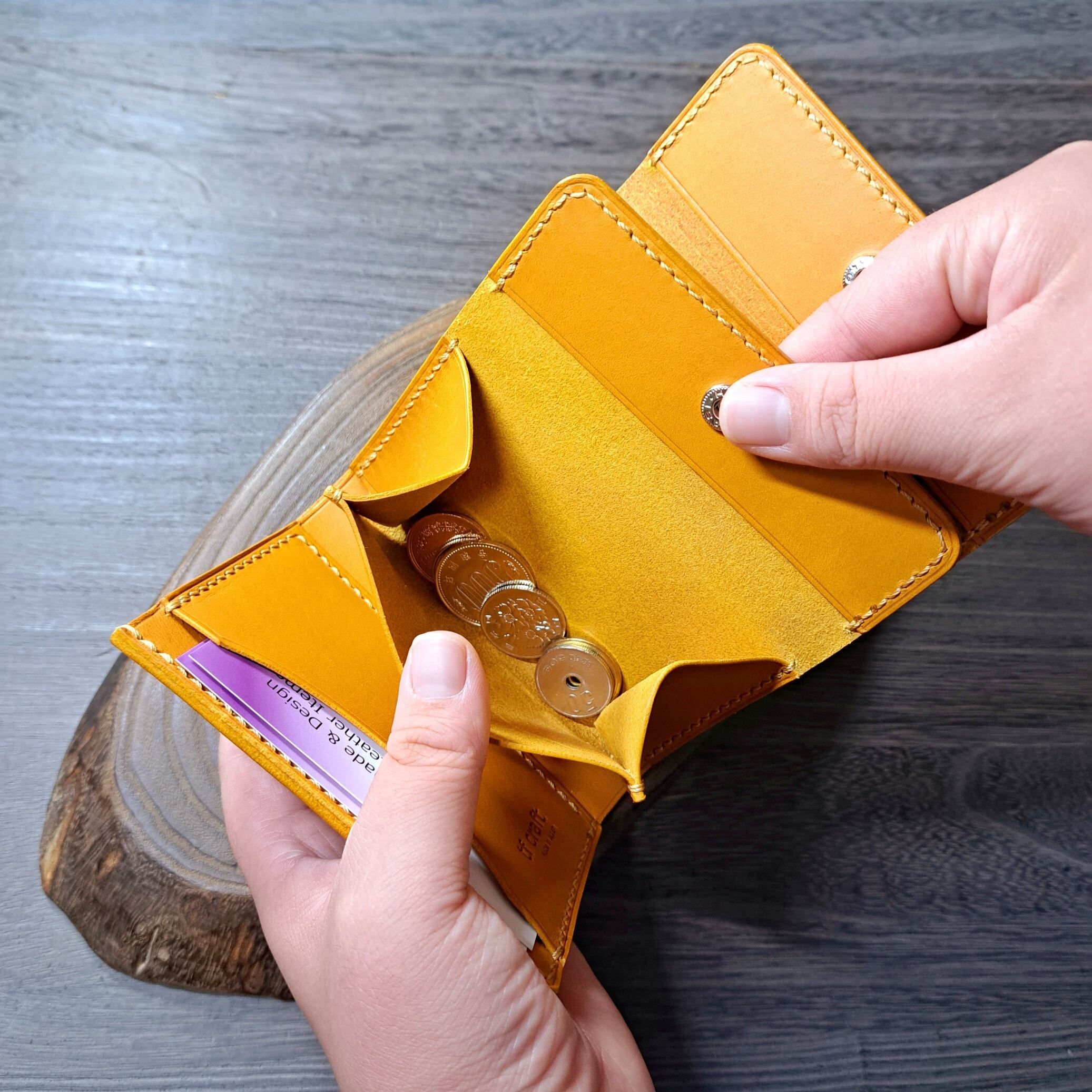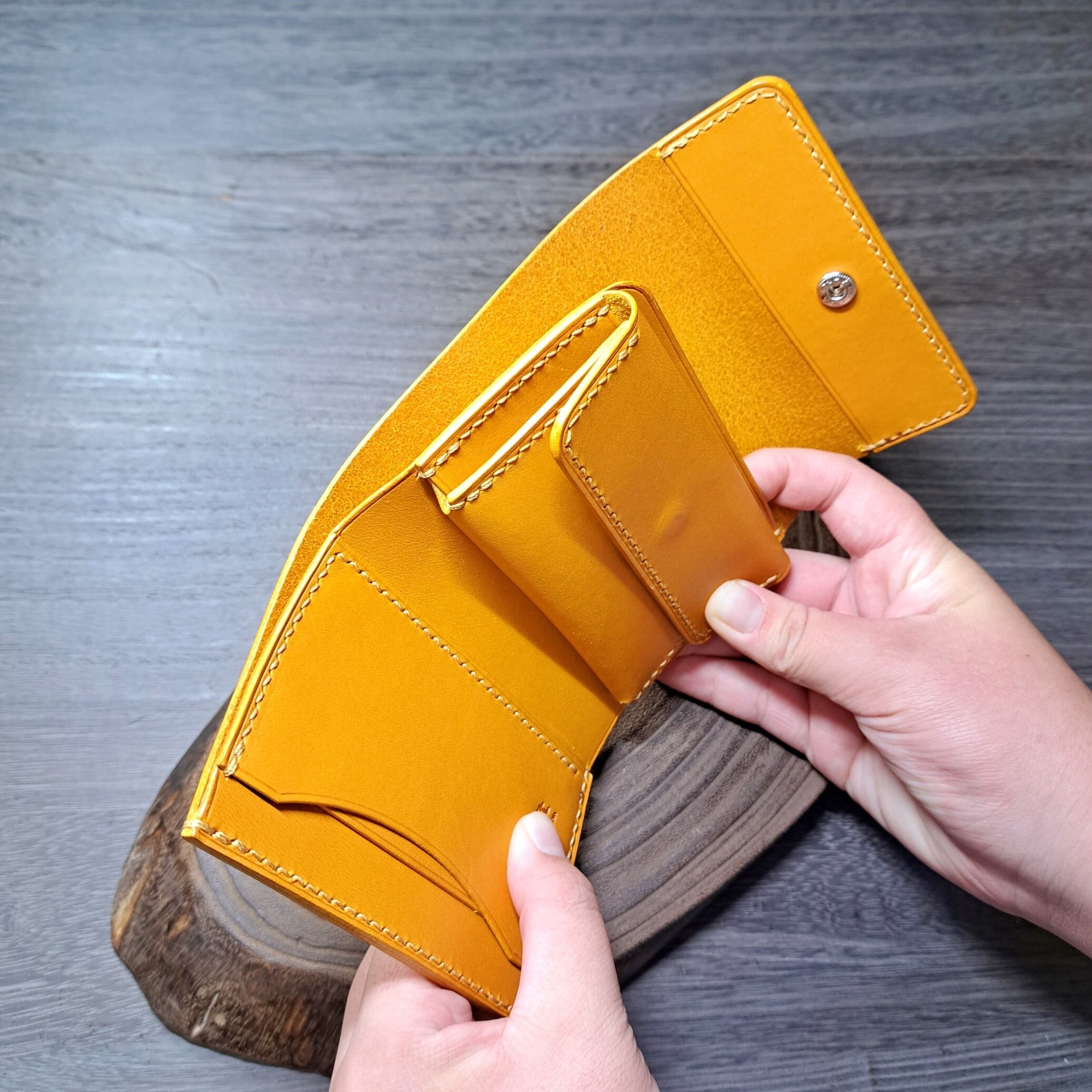高級イタリアンレザー ロスティバーレ社のブルガロを使用して製作した三つ折り財布です。