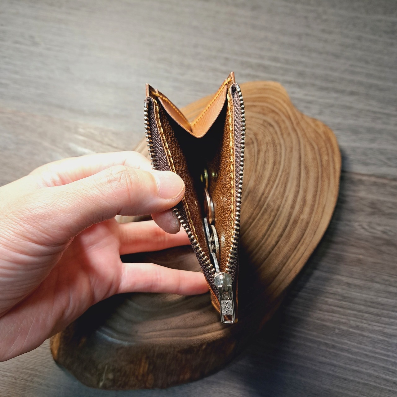 小銭入れはマチ付きで広がるため、取り出すときに見やすくなっております。