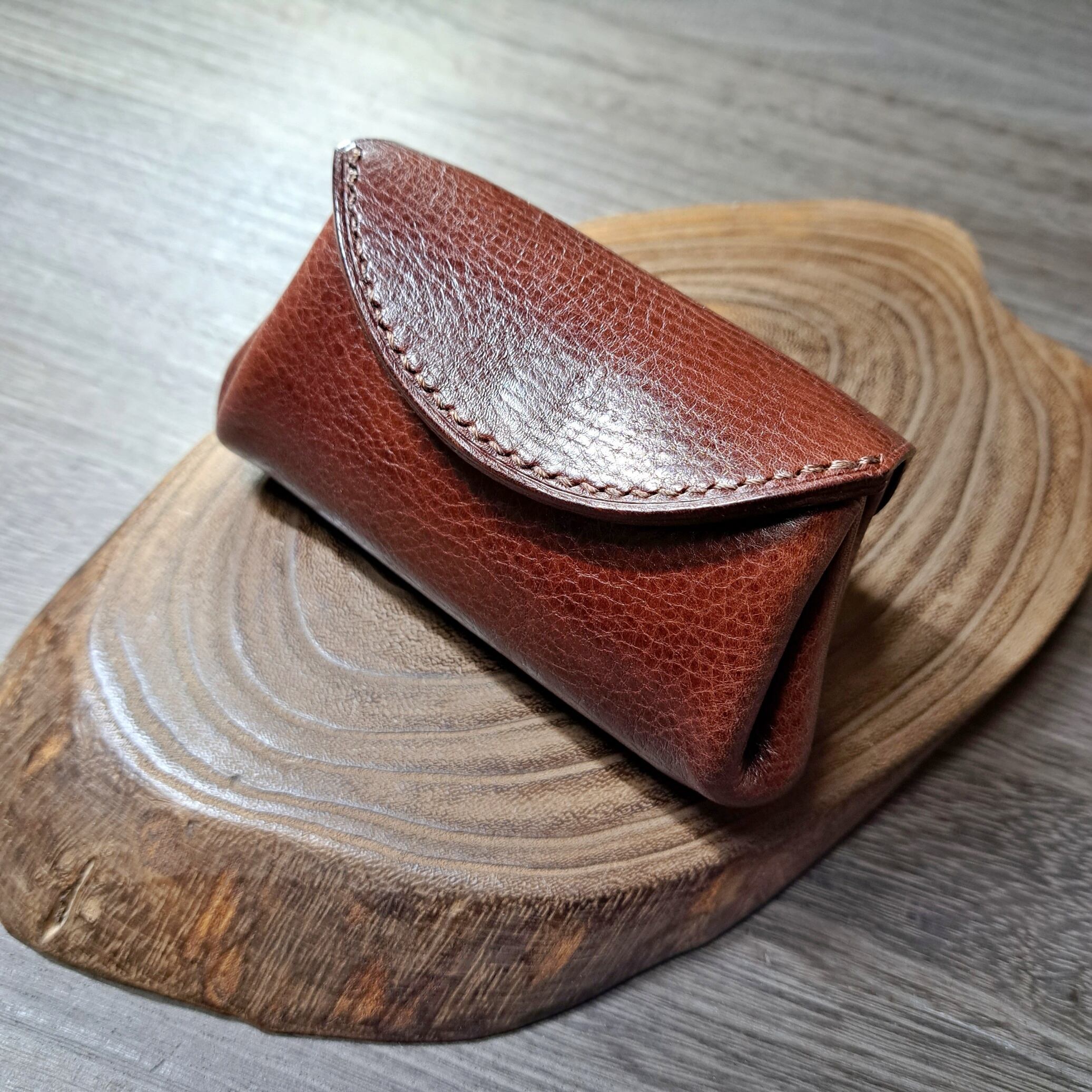 2枚仕立てのフラップはサドルステッチによる手縫いで丁寧に、そして堅牢に縫い上げて丈夫に仕上げております。